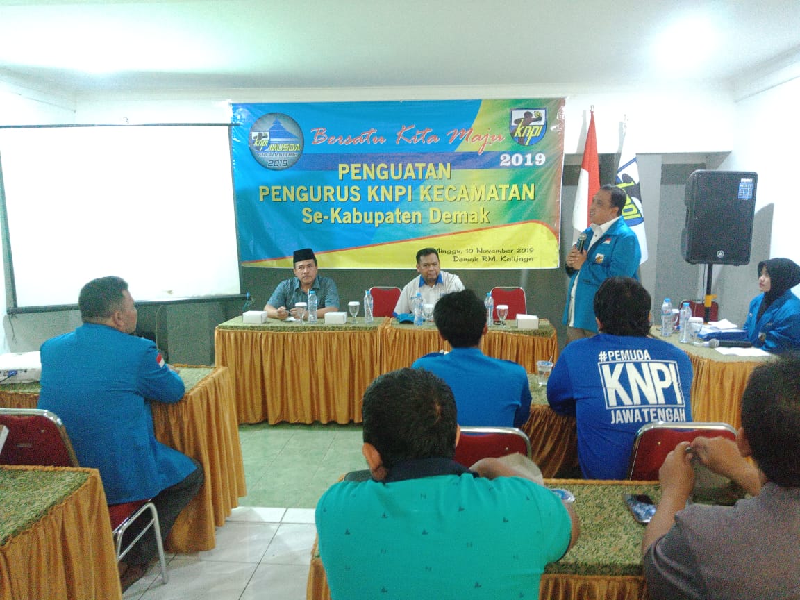 Demak – Kepala Kantor Kesbangpolinmas Kabupaten Demak (Agus Herawan, S.IP, MM) Mengisi materi Wawasan Kebangsaan dalam Kegiatan penguatan pengurus KNPI dengan Tema Bersatu Kita Maju di RM Kalijaga Demak. Minggu, 10 November 2019.