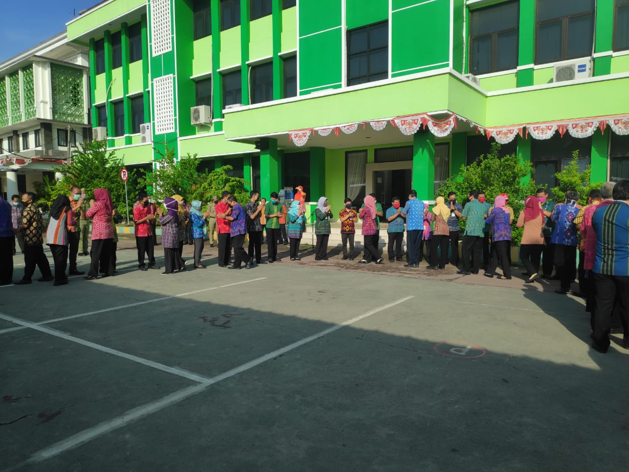 Demak – 26 Mei 2020, Kantor Kesbangpolinmas mengikuti apel pagi dan Halal bi Halal yang di ikuti Semua Intansi di Gedung Hijau Kabupaten Demak.