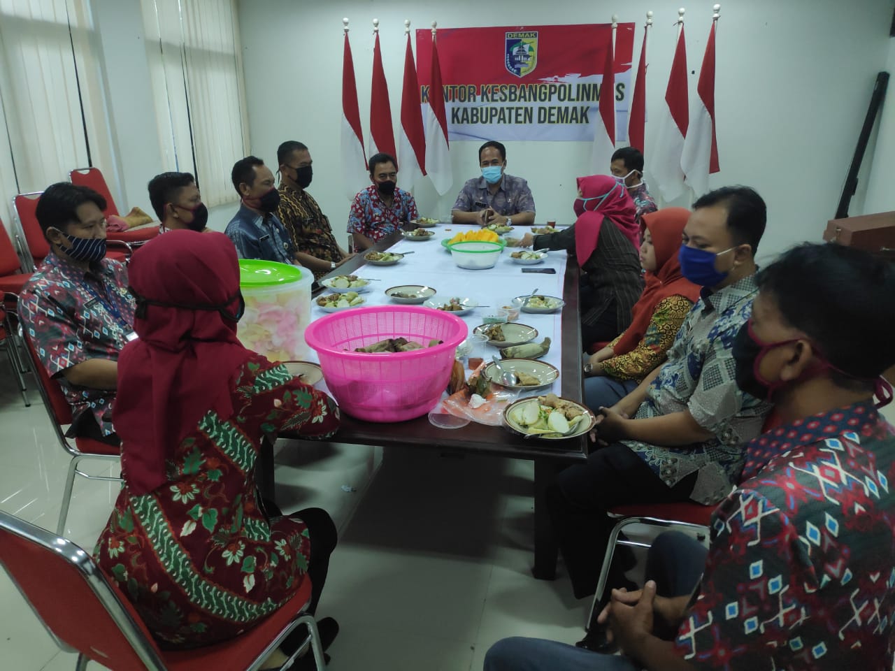 Kegiatan dilanjutakan dengan makan bersama di ruang rapat Kantor Kesbangpolsampai sampai selesai.