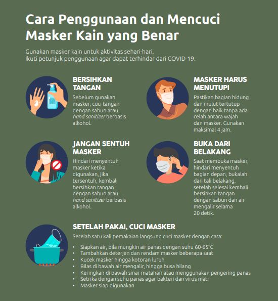 “Pembersihan secara teratur, terutama setelah sekali penggunaan atau ketika masker terlihat kotor dan lembab adalah hal terpenting,” ucapnya. Selain itu, proses pengeringan usai mencuci masker juga harus kita perhatikan.
