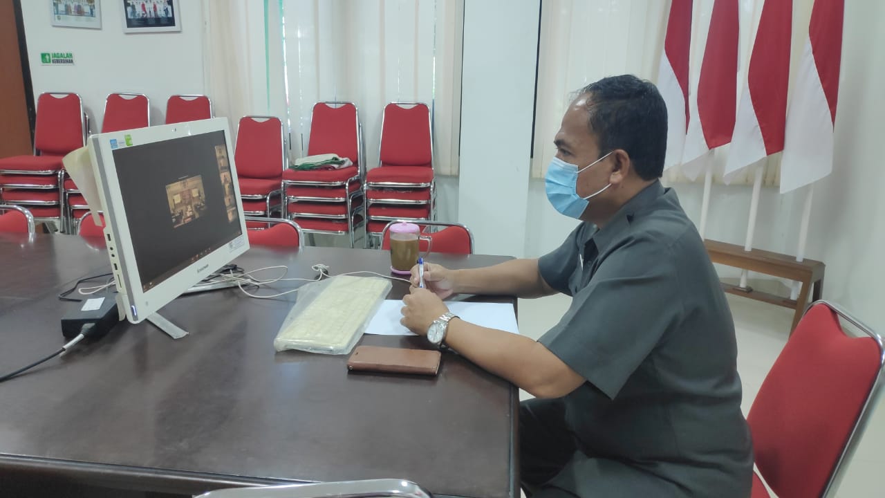 Kegiatan dilakukan dengan video conference, bagi yang lokasi dikantor masing-masing menggunakan aplikasi zoom meeting.