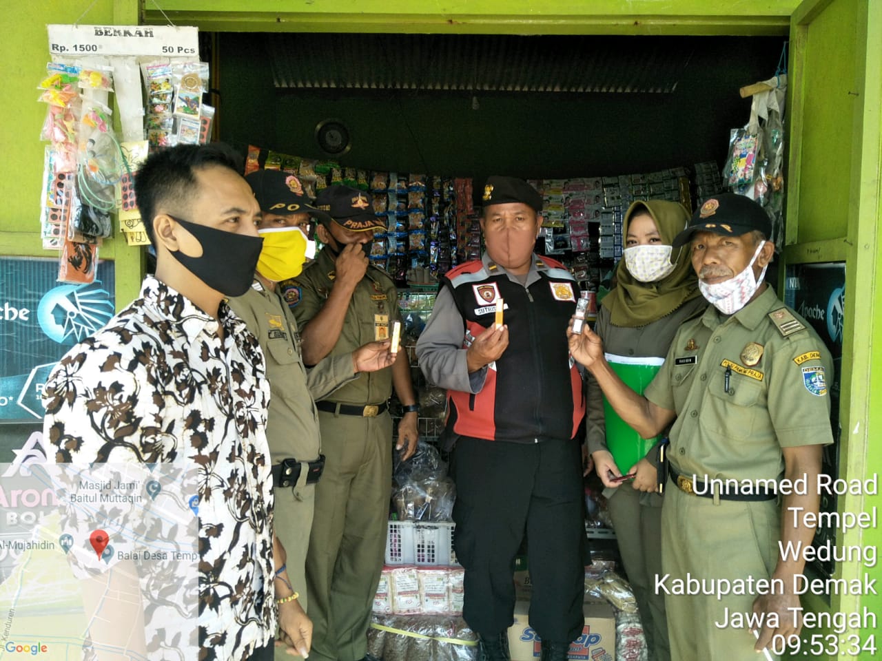 Dilaporkan pada hari Selasa tgl 16 juni 2020 mulai 08.45-11.10 wib Kesbangpol Kab. Demak mengikuti yustisi rokok ilegal yang dilaksanakan Satpol PP diwilayah Kecamatan Wedung dan Mijen :