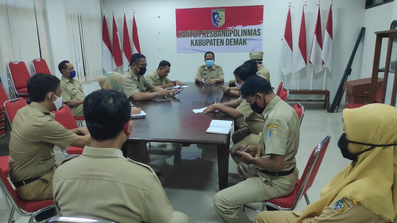 Kantor Kesbangpol Kab. Demak melaksanakan Rapat Staf yang bertempat di di ruang rapat kantor Kesbangpolinmas Kab. Demak, Pada hari senin. 22 Juni 2020.