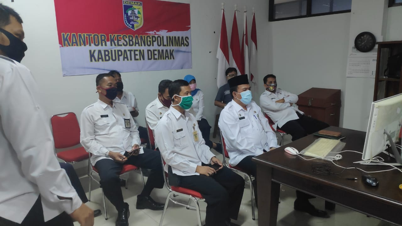Demak – Kesbangpolinmas mengikuti Sosialisasi E-Kinerja Melalui Video Conference bertempat di ruang rapat Kantor Kesbangpolinmas Kabupaten Demak pada Jum’at 03 Juli 2020.