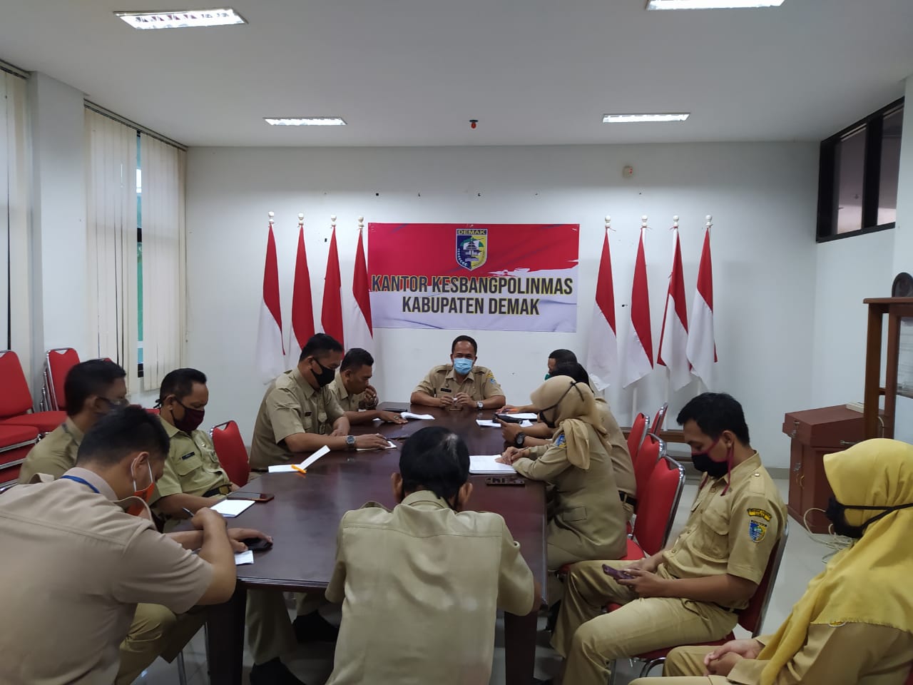 Kantor Kesbangpolinmas melaksanakan giat rapat staf, pada hari Senin, 27 Juli 2020, Pukul 08.00 s/d selesai, bertempat di Ruang Kantor Kesbangpolinmas Kabupaten Demak, diikuti 14 orang.
