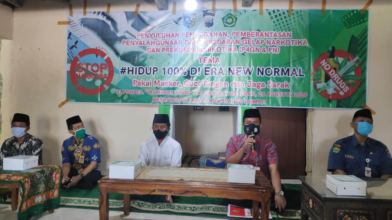 Pada hari Selasa, 26 Agustus 2020, Pukul 09.00 s/d selesai, telah dilaksanakan giat dengan tema Penyuluhan Pencegah gunaan Narkoba bagi remaja dan generasi muda, bertempat di Pondok Pesantren Manba’ul ulum Kali Tekuk Ngaluran Kabupaten Demak.