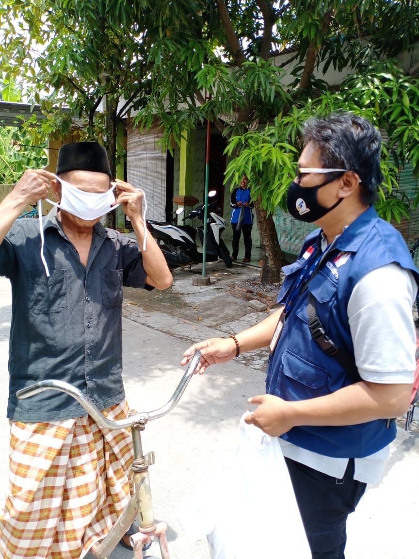 Jamaah masjid lk. 350 orang, dengan jumlah masker 200, masih ada beberapa warga yang tidak menerima bantuan masker.