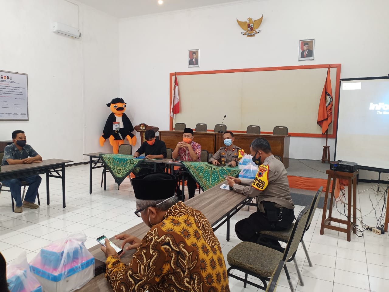 Pada tanggal 08 November 2020 pukul 10.45 s. d 12.15 WIB bertempat di Ruang Rapat Pertemuan KPUD Kab. Demak telah berlangsung Rapat persiapan Technical Meeting Debat Publik/Debat terbuka dalam pemilihan Bupati dan Wakil Bupati Demak yang diikuti lk. 25 Orang.