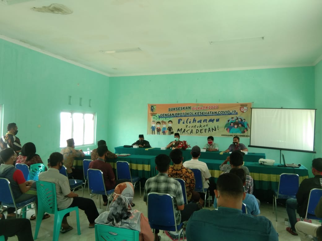 Inti sambutan Camat Kebonagung “terkait pilkada kita termasuk wilayah kecil, krna kecamatan kebonagung kecamatan yang paling kecil.saya harap sosialisasi mensukseskan pilkada 2020 dengan protokol covid bisa di fahami oleh kita semua”.