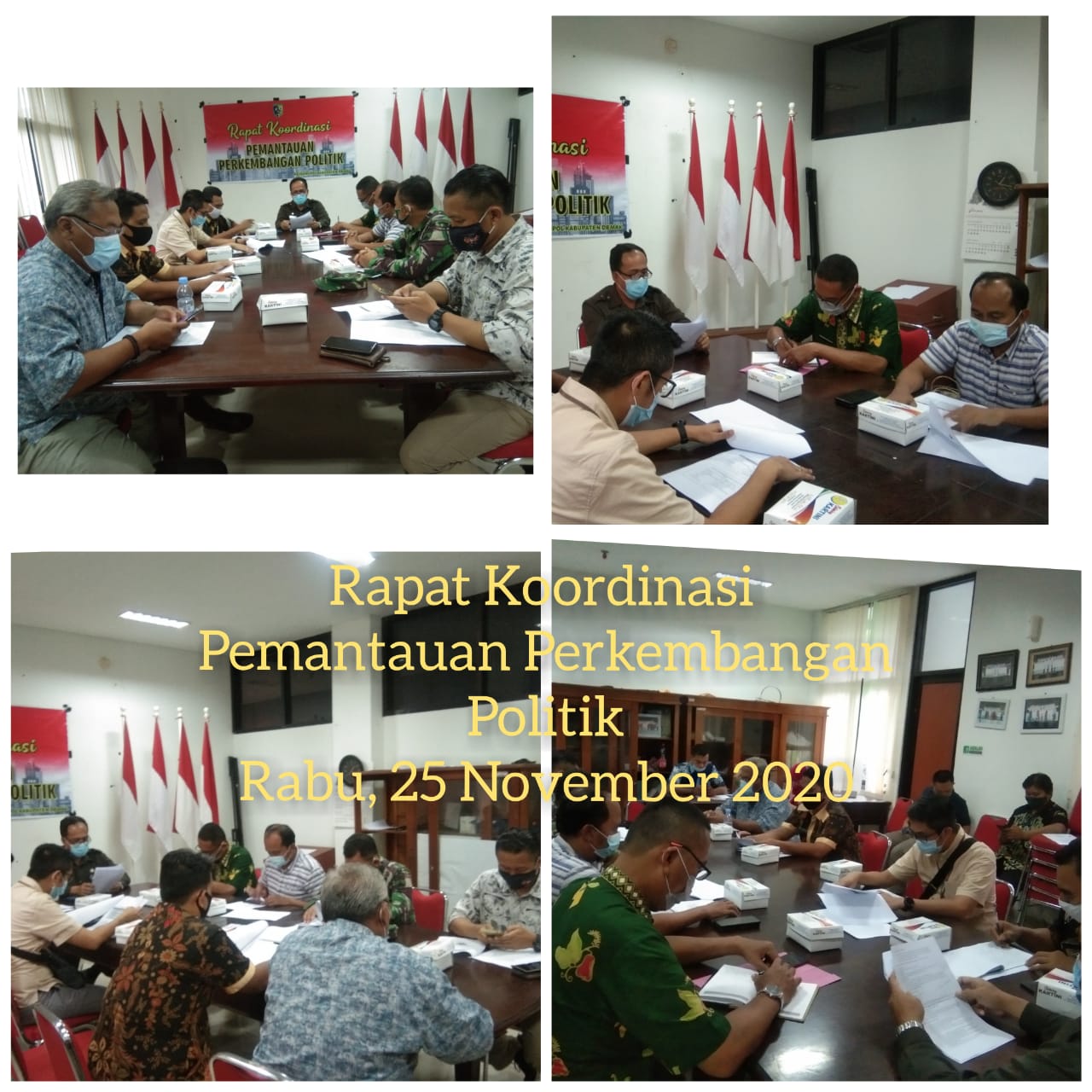 Kesbangpol telah melaksanakan Rakor Pemantauan Perkembangan Politik yang bertempat di ruang rapat Kesbangpol Kabupaten Demak pada rabu 25 November 2020 puku 13.00 s/d selesai.
