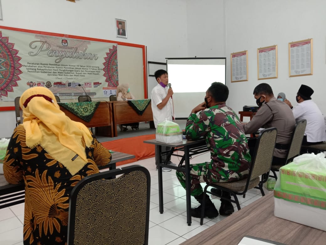 Kesbangpol Kabupaten Demak mengikuti giat Penyuluhan peraturan KPU nomor 19 tahun 2020 tentang perubahan atas peraturan KPU nomor 9 tahun 2018 tentang Rekapitulasi Hasil penghitungan suara dan penetapan hasil pemilihan gubernur dan wakil gubernur, bupati dan wakil Bupati, dan/atau walikota dan wakil wali kota, hari Jumat tanggal 4 Desember 2020, jam 09.30 s/d 11.10 wib di Aula II KPU Demak.