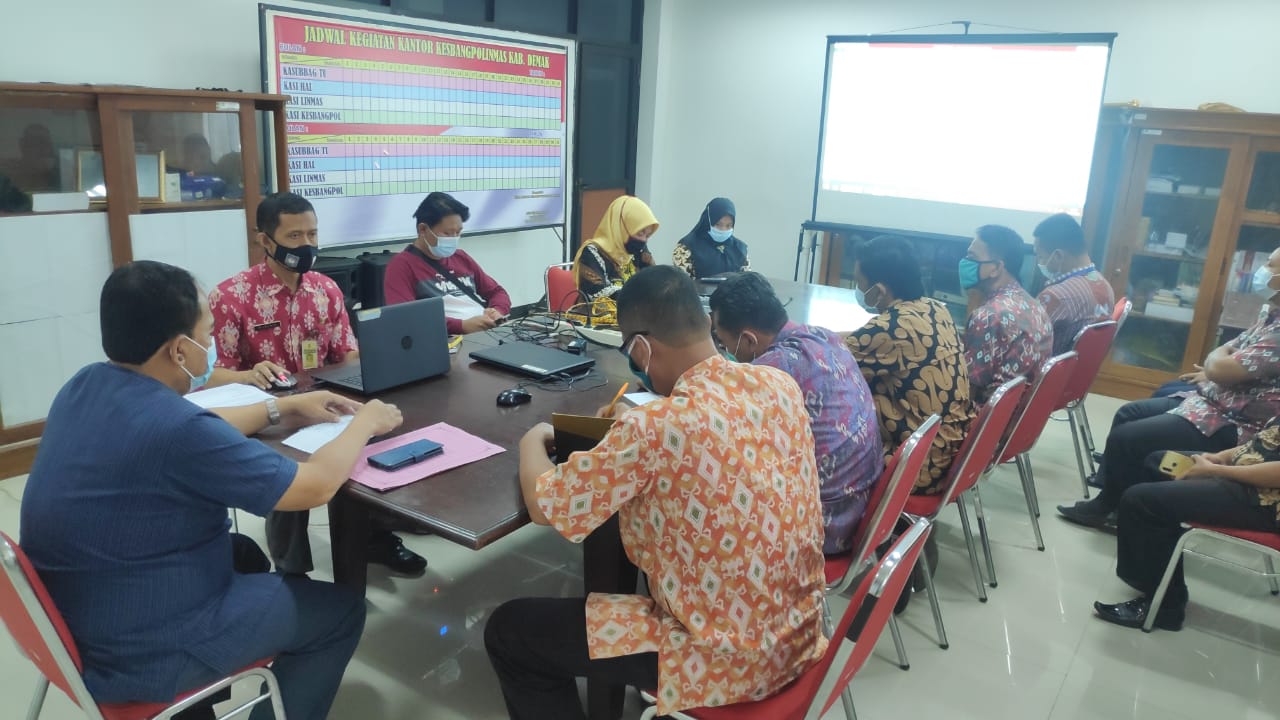 Inti penyampaian Ka Sub Bag Tata Usaha (Muslihin, SH, MH) “Kalau menurut SIPD ini yang melaksanakan sesuai kepala bidang, karena kepala bidang belum ada maka sesuai kasi yang melaksanakan. Badan kesbangpol maka akan ada 2 bidang, yaitu bidang kesbang dan bidang poldagri”.