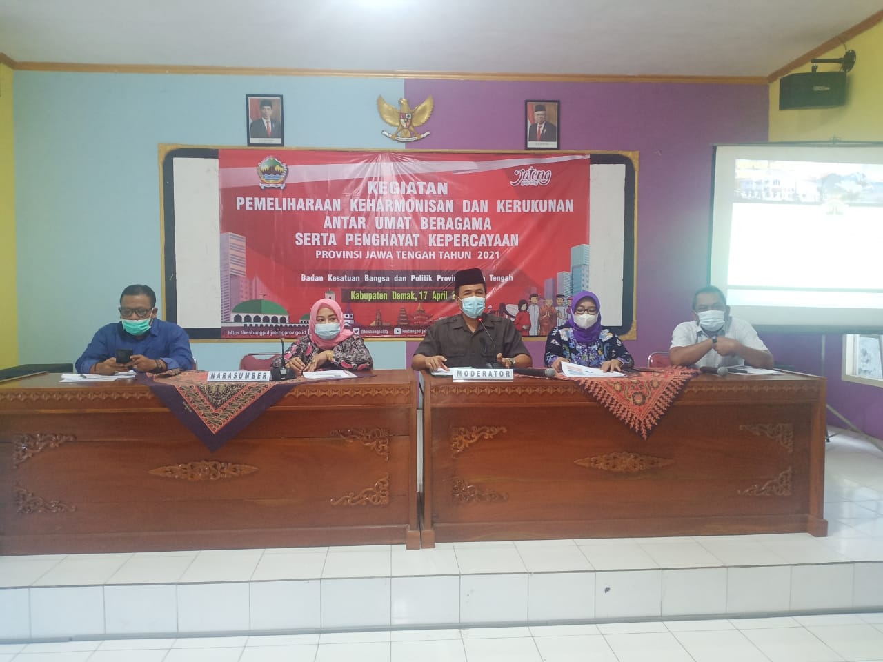 Pada hari Sabtu, 17 April 2021, mulai pukul 14.15 Wib – 16.19 Wib, bertempat di Aula Kecamatan Demak, telah berlangsung giat Wasbang dengan tema Pemeliharaan Keharmonisan dan kerukunan antar umat beragama serta penghayatan kepercayaan.