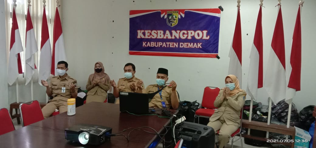 Dalam acara tersebut hadir Kepala Kantor Kesbangpol (Agus Herawan, S.IP, MM) dan Para Kasi beserta seluruh staf, dengan mengikuti secara virtual dari ruang Rapat Kesbangpol Kab. Demak.