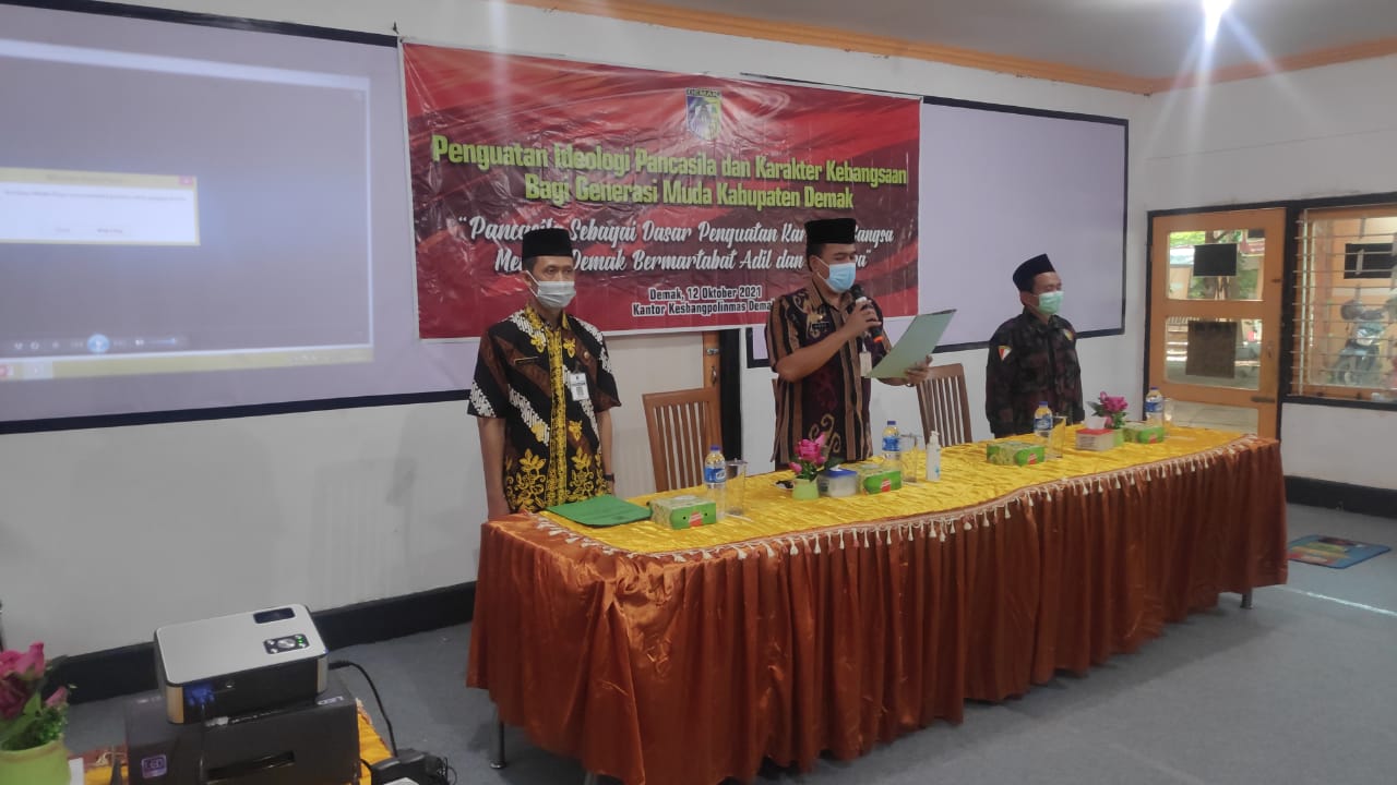 Kesbangpol Kabupaten Demak telah melaksanakan giat Penguatan Ideologi Pancasila dan Karakter Kebangsaan Bagi Generasi Muda Kab. Demak “Pancasila sebagai dasar penguatan karakter bangsa menuju demak bermanfaat adil dan sejahtera” pada 12 Oktober 2021.