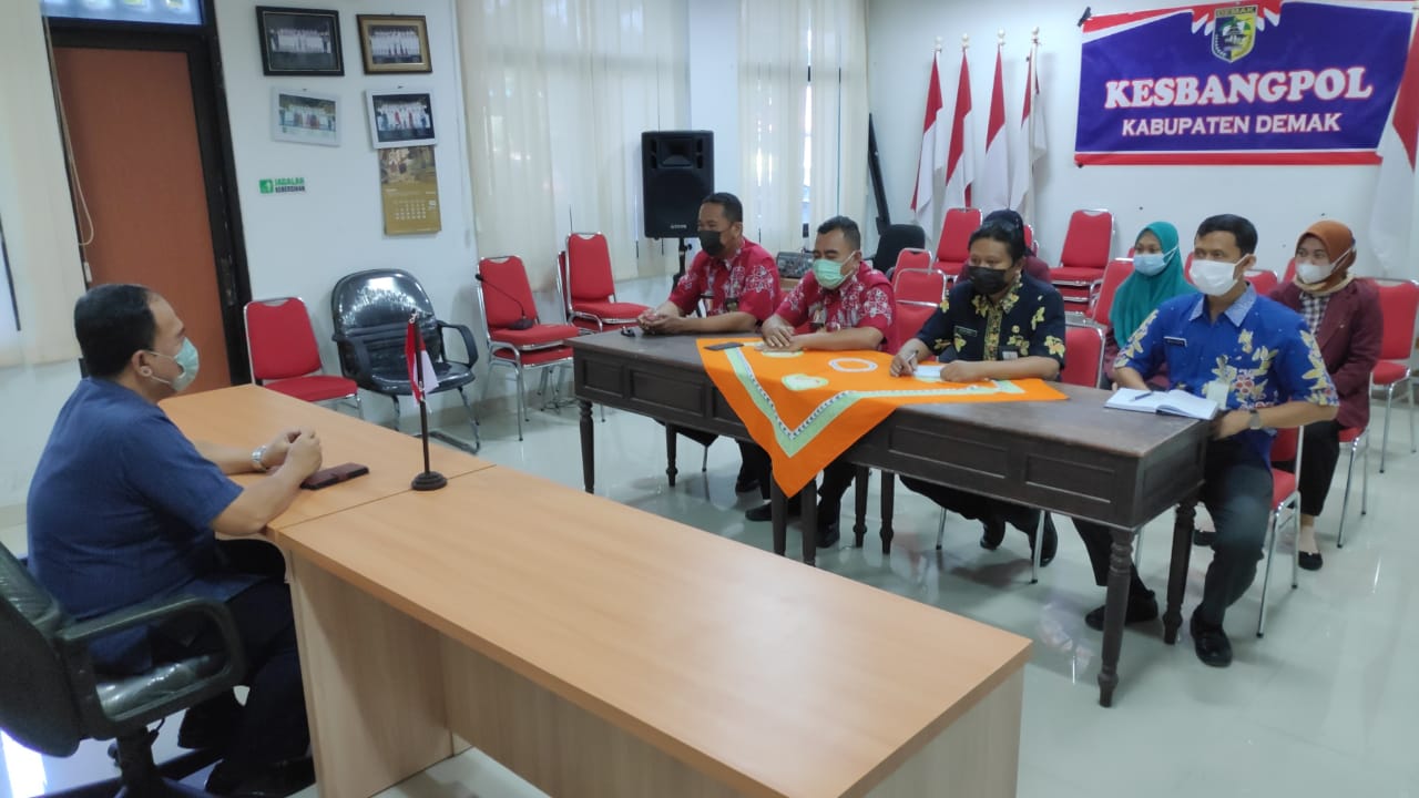 Demak – 9 Februari 2022, Kesbangpol Kabupaten Demak melaksanakan Kegiatan pengarahan dan pembinaan kepada Mahasiswa IAIN Kudus yang sedang magang di Kesbangpol Kabupaten Demak yang bertempat di Ruang Rapat Kesbangpol Kab. Demak.