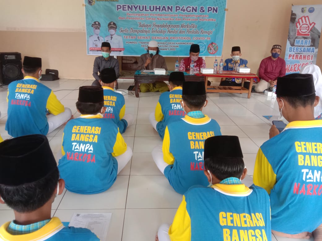 Pada Hari Rabu, 09 Maret 2022 pkl 08.30 wib s.d selesai bertempat di Ponpes Tahfidzh Al-Hikmah Desa Karangasem Kec. Sayung Kab.Demak telah dilaksanakan Pencegahan Pemberantasan Penyalahgunaan dan Peredaran Gelap Narkotika dan Prekursor Narkotika.