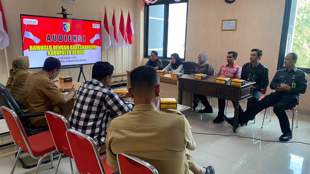 Telah dilaksanakan kegiatan Audiensi Bawaslu kepada Bakesbangpol Kab. Demak, pada hari Senin, 9 Oktober 2023 pukul 14.00 WIB bertempat di Ruang Rapat Bakesbangpol Demak.